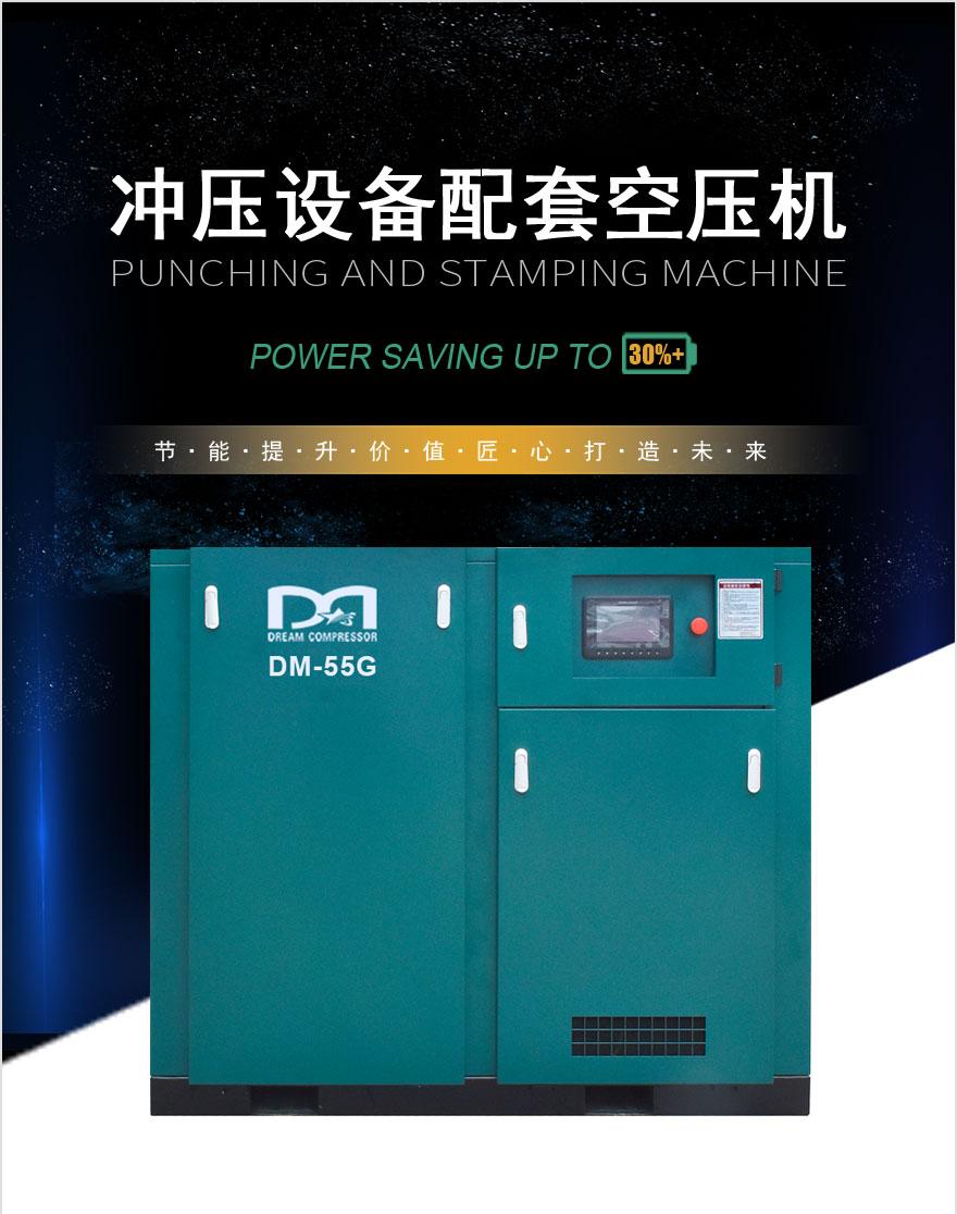 冲压设备配套——单极压缩空压机 功率:7~250 KW 排气量:1.2-45.5 m3/min 排气压力:0.8~1.6Mpa 型号:【DM-G永磁系列】