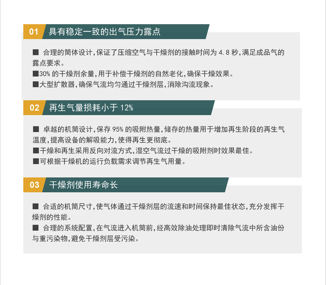成品气压力露点:-40℃ ~ -70℃ 干 燥 剂:活性氧化铝