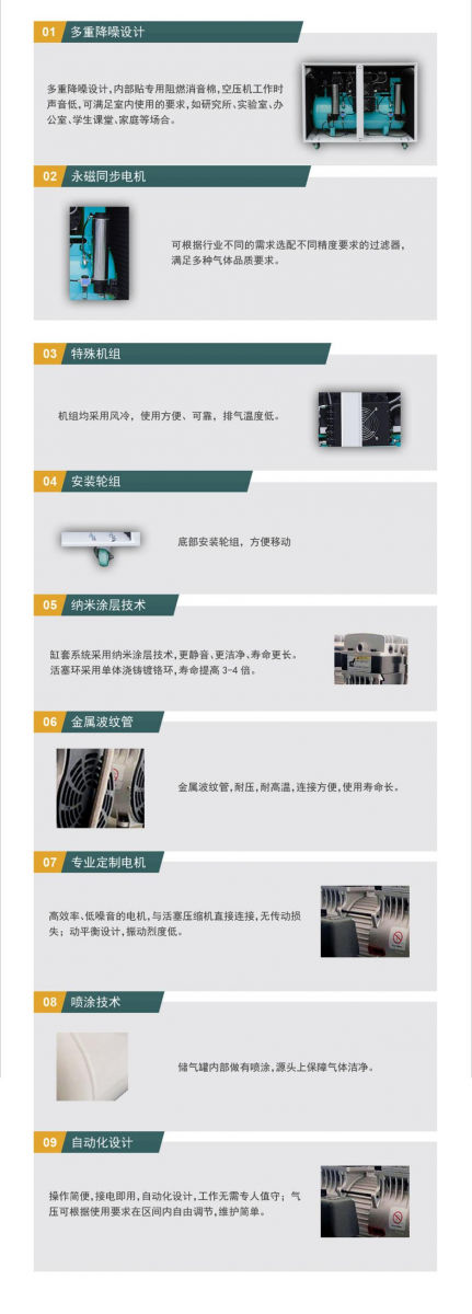 适用行业:无油静音活塞空压机