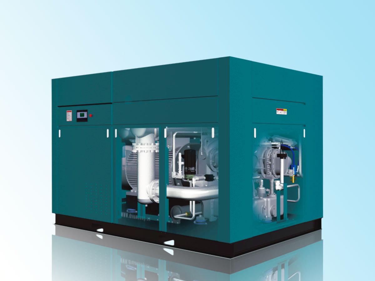 功率:45~250 KW 排气量: 6.9~46 M³/min 排气压力:0.7-1.0 Mpa 型号: DMW-G 适用行业:干式无油螺杆空压机